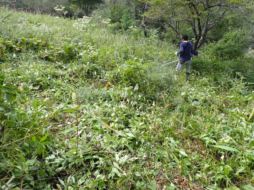活動内容は木無山直下の防鹿柵内のササ刈りとテンニンソウの抜き取りを行いました。